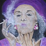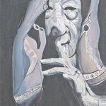 Portraits – both human and animal – are a relatively new challenge for me. I started with a study of Dylan Thomas Lovelass, our rescue spaniel, as he was such a huge personality and have been hooked ever since. I use mainly acrylics on canvas, to try and capture the essence and character of the individual.